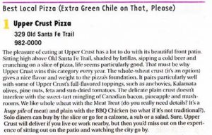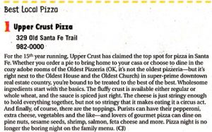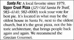 CONSISTENTLY VOTED BEST PIZZA IN SANTA FE, SANTA FE REPORTER 1995-2009
